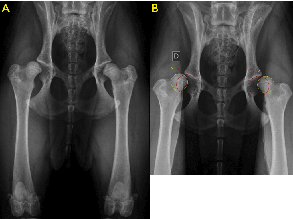 La diagnosi precoce di questa patologia può essere effettuata a tre e mezzo/ quattro mesi di vita, attraverso una visita ortopedica ed uno screening radiografico, in una fase in cui i sintomi clinici possono essere ancora assenti o “sfumati” (infatti una cane di 3 – 4 mesi di età spesso non manifesta dei sintomi clinici di displasia, anche se gravemente affetto, sia per il ridotto peso corporeo, sia per la capacità della cartilagine articolare di sopportare gli insulti iniziali).